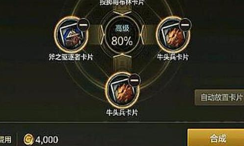 普通卡片有80%几率合成高级卡,高级卡只有16%的几率合成稀有卡,稀有卡只有4%的几率合成神器卡,神器卡为最高等级卡片。