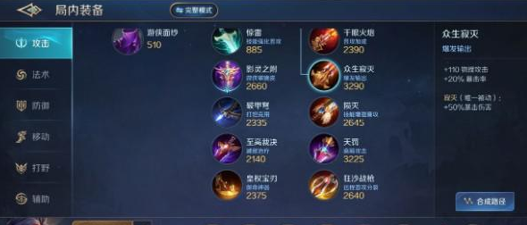 出装推荐这套物理暴击装,星盘推荐这套物理吸血。