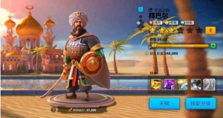 拜巴尔:阿拉伯的初始统帅,其定位是骑兵、攻城、技能,输出强同时身兼小幅度的治疗,比较推荐的一个初始统帅。