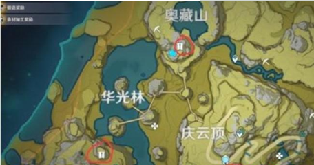 1、在庆云顶最高处有一处机关(就在庆云顶“顶”字旁边的传送点那里),与机关交互之后,发现需要寻找附近山头的三处神鸟雕像。