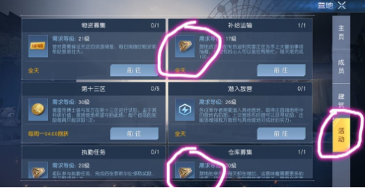 就会显示出所有和营地有关的活动,其中,有好几个,平日里系统都是不提示的。