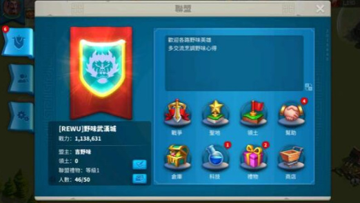 1、在玩家加入或者是创建了一个联盟之后,系统就会为玩家分配一块相对的联盟领地,在这里玩家可以获得大部分联盟发展所需的道具和资源。