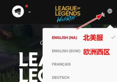 打开网站后点右上角的地球标志,选择区服,在截图中标注了几个大家常用的区服,不同区服的测试开始时间可能不同。