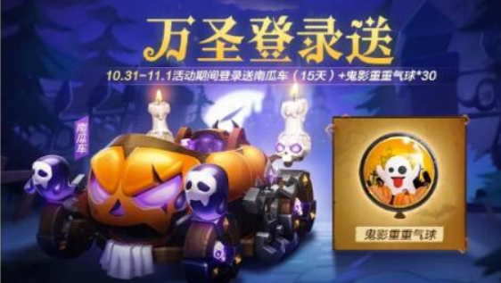 活动规则:车友们在活动期间,每日登录游戏即可获得南瓜车*15天、鬼影重重气球*30啦。