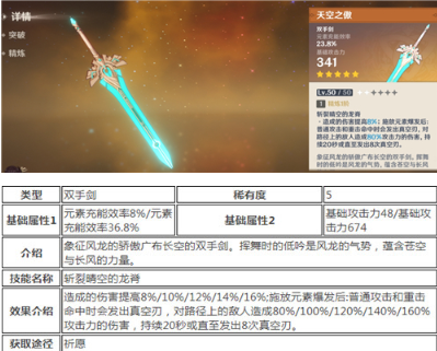 辛焱5星武器推荐:五星武器里,天空之傲最适合辛焱。