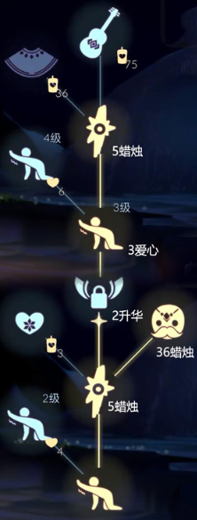 墨绿斗篷需要65根白蜡烛兑换,前置还需要10根白蜡烛、3颗爱心和2根红蜡烛。