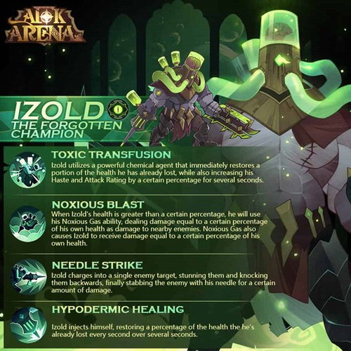 其最具特色的技能,在生命值高于一定比例时将会在周身散发毒气,毒气可以造成对邻近的敌人不断造成伤害,但是也会对伊索尔德自己的生命带来损耗。