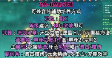 命座和武器队伍砂糖的培养方式是有较大影响的,咱有啥用啥就可以。