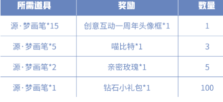 参与圆梦共创兑共创头像框系列活动,收集源·梦画笔,可免费兑换创意互动一周年头像框、喵比特等奖励!