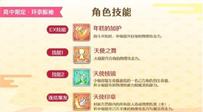 从新年环奈的技能来看,这个角色定位应该还是中排输出,同时能提升一定的全队攻击力以及小额加血。对比原版环奈来看,多了一个加血,少了一个全体伤害的小技能以及全体加速,从强度上来说,应该还是不如原版环奈。