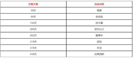 下面是转盘活动的开启时间表,往后面推2-3个月,就是该武将同符合契的上线时间。