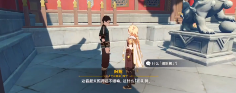 1、首先去飞云商会找家丁阿旭,对话接取任务,要求是将留影机印出的画送给两个客人。