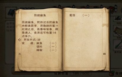 蒜烧扁鱼,煎炸过后的扁鱼肉鲜美异常,用微甜的酱汁红烧之后,色香味皆备,颇是诱人,食用后可恢复14点体力。