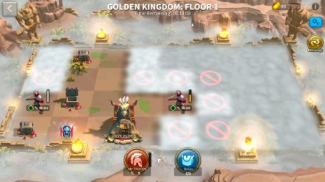 部队安排你将选择你自己的部队和统帅进行战斗。一次最多可派遣5支军队。一旦他们被派遣,你将不能改变他们的装备,队列和天赋树,除非你重新开始这个活动。兵力任何一方的军队都会在战斗结束后复活。战斗结果不会对你的战力产生任何影响。提高实力的途径所有装备、个人科技、统帅天赋、VIP等级的buff、文明特性、城市建筑加成和特殊城市头衔的buff都可以在“黄金王国”活动中生效。