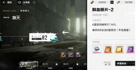 鲜血断片-2是第二副本,主要产出3星~6星随机意识,每次通关的六星意识掉率为17.14%,累计通关八次必定掉落。小编推荐老手培养好尼尔三人队后再挑战该副本,同时每次通关还能获得不超过10个断片残章。