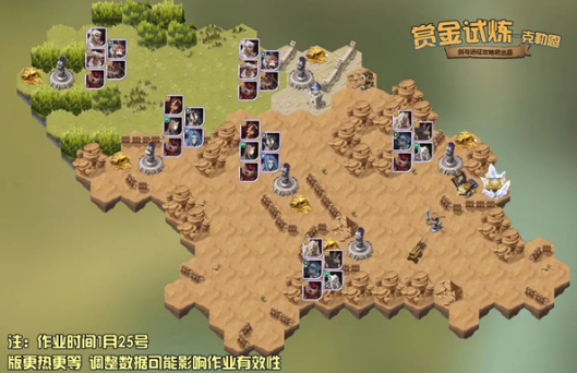 参考如图的阵容安排即可顺利通关本期赏金试炼。图示阵容仅供参考,并非唯一解法。