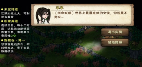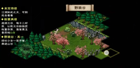 野狼谷(3,4):触发剧情,选择【死了】/【隐瞒】,对话宫长安,选择【你的病】,选择【你要走了吗】,选择【点头】,选择【这么快?】(野狼谷对你开放!),获得【声望】×4、【阅历】×10000
