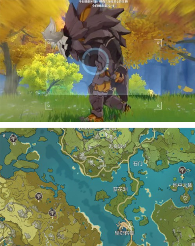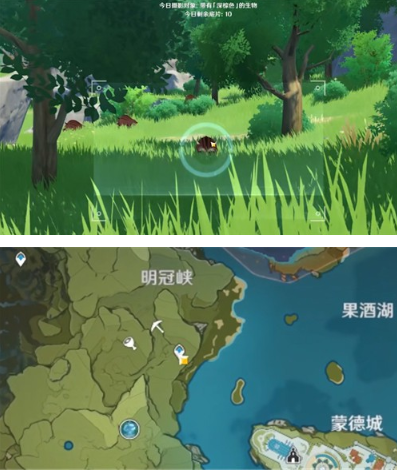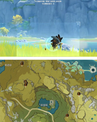 目前辨识度较高,并且比较好找的棕色摄影对象,就是野猪+丘丘岩盔王+幼岩龙蜥。松鼠也有棕色的,就是出没地点随机,路上如果碰到了可以给它拍张照。