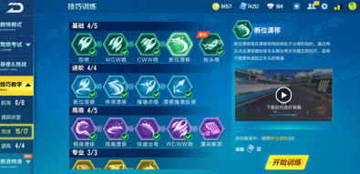 其实在游戏中炫点就是我们的各种特殊技巧,这些技巧我们可以在教学模式中看到,也就是CWW、WCW、氮气延续,甩尾漂移,弹射等等相关的操作,我们只要每完成一次就算一次炫点。