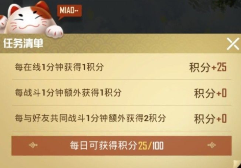 【猫元宝】的获得方式有2种,活动每天最多得4个,然后用200服饰币可以换1个。在左边的任务活动可以看到,当到达30积分、60积分、100积分时,可以共获得4个【猫元宝】。