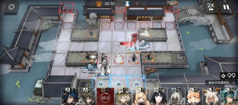 开局中间布置山开二技能,右侧布置煌冲右侧攻击,左侧布置泥岩冲上攻击,等着用炸药换属性即可,山可以用挡二先锋替代,泥岩这个地方尽量保证放重装,因为敌人很容易堆积,煌可以用棘刺或者其他群卫来替代,想低练度通关,高台布置奶妈或者输出即可,可以加快攻略速度。