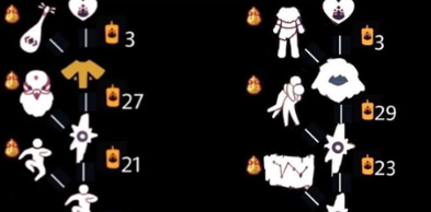 首先你要氪一张季卡,然后梦想季先祖【解锁到最上面的节点】就是季节爱心,即:树状图最顶端的兑换物品。如上图所示,每个先祖的兑换树状图顶端,都有一颗爱心,用三根季节蜡烛就能兑换了。