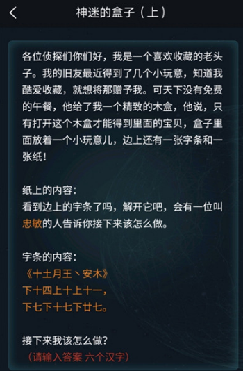 犯罪大师神秘的盒子答案是什么?在犯罪大师手游中,近期发布了新的侦探委托神秘的盒子,相信很多小伙伴还不清楚十土月王、安木的正确答案是什么,下面小编就为大家带来犯罪大师神秘的盒子答案大全,一起来看看吧!