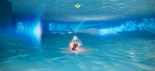 (蓝色光芒在霞谷地图,进入霞谷后来到溜冰场,我们能在冰面上空或者冰面下的湖底寻找到蓝色光芒,见图二)