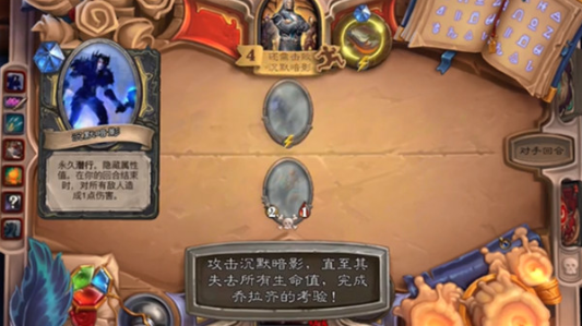 注意因为沉默暗影永久潜行的效果,玩家是无法用随从攻击到沉默暗影的方式来解掉的。