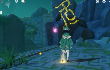 石门开启的条件是需要玩家带着一个火转两圈,记得看到这个符号的时候需要先退后一些,让这个符号正好成一种形状,这样子才能激活机关。这个任务类似于之前的支线任务,需要玩家站在指定的地点,先把视角对准好,然后符号两了以后带着火绕圈圈就可以完成了。