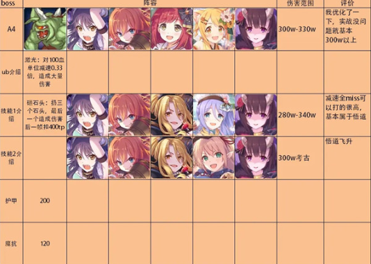 独眼巨人的一技能将会攻击攻击力最高的角色,并且会降低tp,之前一直都是使用暴击弓来吸收独眼巨人的一技能,这也让暴击弓经常暴毙。到现在可以使用水猫抽取bosstp,减少boss开大的频率;也可以什么都不上使用标准物理队追梦输出。
