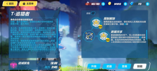 队伍内其他角色使用蓄力攻击或分支攻击命中敌人时,若场上存在无人机,则使在场无人机协同进行一次特殊攻击并使迷城骇兔每秒回复1.2点能量,持续10秒,重复触发刷新持续时间,冷却时间2秒。