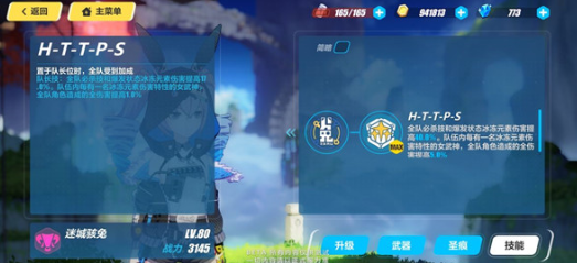 特殊攻击:根据角色武器类型进行相应攻击,共造成180%攻击力冰冻元素伤。