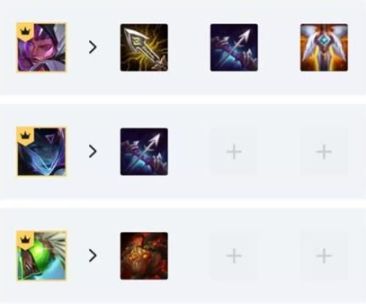 开局我们先抢大剑,拳套,反曲之弓这三件万能装备,如果都抢不到,就退而求其次抢腰带锁子甲吧。我们优先还是考虑做无尽轻语,如果前期传送门,救赎,红BUFF胡了,也可以直接合成用于过渡。