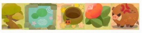 关卡中,设置有「树木」「水塘」「落穴」「巨花」「野猪」5种障碍物。式神碰撞到障碍物,本局游戏结束。