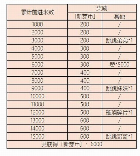 1.每天可以获取1500个「新芽币」,活动一共12天,可以获得共计18000「新芽币」,加上距离奖励共计可以获得24000「新芽币」,也就是刚好可以搬空商店。