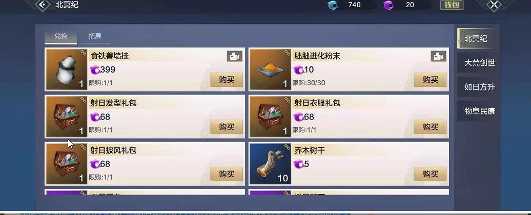 游戏中的“纪元商店”可以通过货币“北冥玉”以及“北冥玉·上古”兑换其中的珍贵物品。
