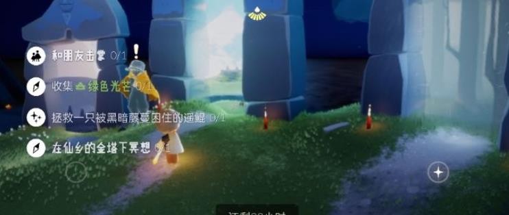 和一位朋友击掌,跟遇境的引导先祖击掌也可完成任务,对一名好友使用“击掌”动作(解锁此动作需要1个蜡烛);
