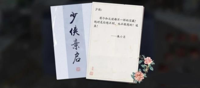 由于此前剧情中,少侠与白玉京在襄州有所接触,而白玉京现身襄州的消息也被消息灵通的朱小月得知,联想到五行藏珍和各种迹象,朱小月猜测:白玉京宝藏即将出世,而地点就在襄州,故邀请少侠前去帮忙找寻。
