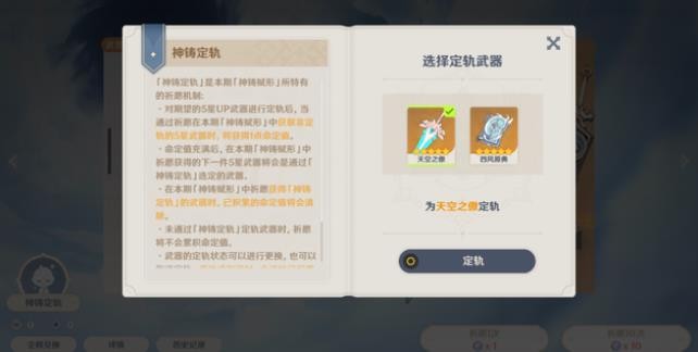「神铸定轨」是「神铸赋形」所特有的祈愿机制,旅行者可以对期望获取的5星UP武器进行「定轨」。