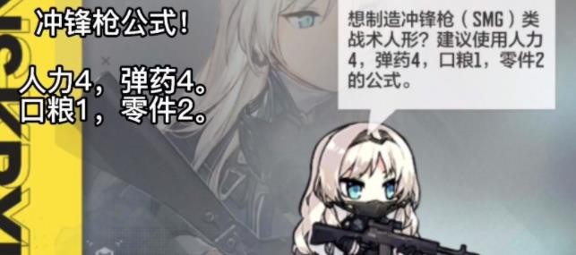 人形篇:制造公式基本都是人力,弹药,口粮,零件。