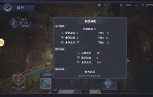 任意魂师获得好感经验时,可获得同样数值的总好感经验,总好感经验可提升总好感等级,总好感等级提升时,可使全体魂师获得属性加成。
