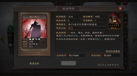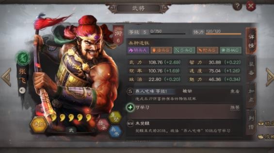 战法讲解:前文说的正是「燕人咆哮」这一战法,具有稳定的全体伤害能力,在这种SLG这种概率游戏中,能够稳定造成伤害的技能一直都非常吃香,因此,自带「燕人咆哮」这一战法的张飞自然也不例外。