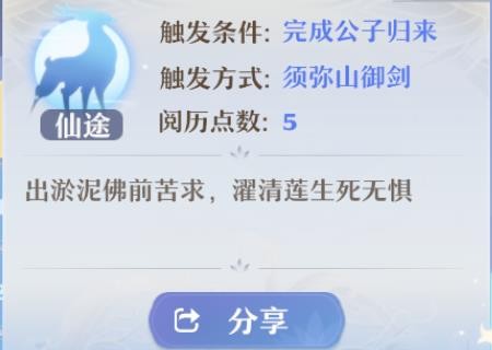 1、佛前奇缘是须弥山御剑,大家在夜间就可以触发成功了,但是也是需要做需完成神州见闻公子归来支线任务哦。