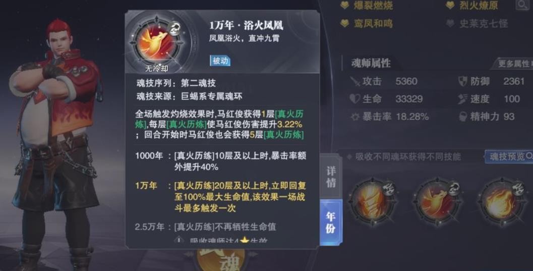 首先初始100元送一个,其次马红俊的2魂环的被动技能能够提高暴击率配合上辅助及其他方面的增益,能够有效打出暴击爆伤。