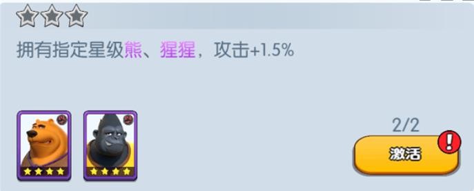 拥有指定星级熊、猩猩,攻击+1.5%