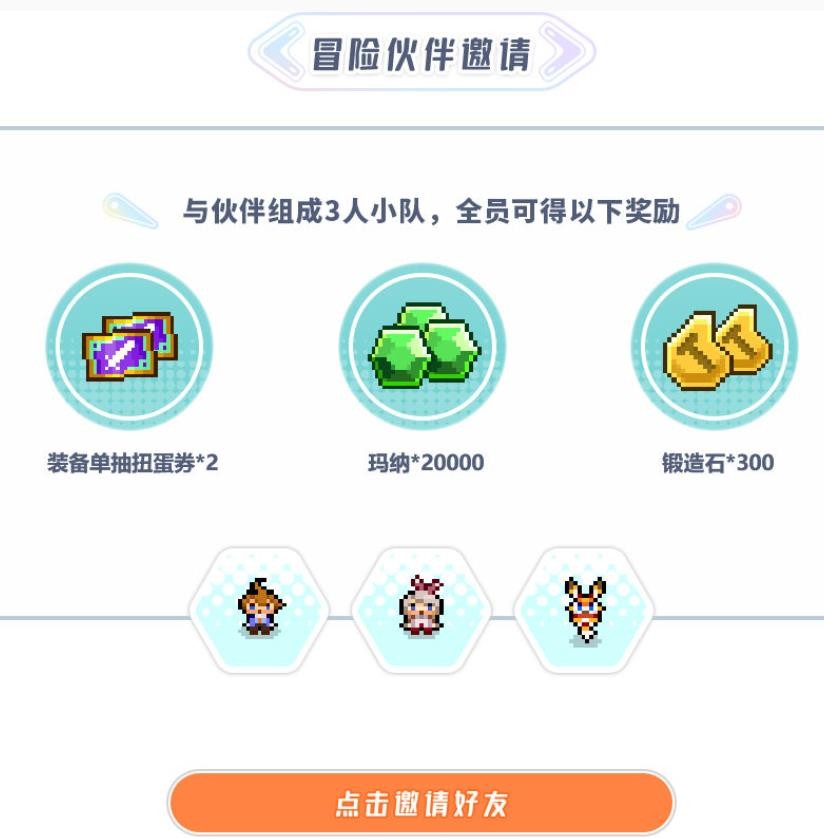 邀请小伙伴组成3人小队,全员还可获得额外预约奖励: