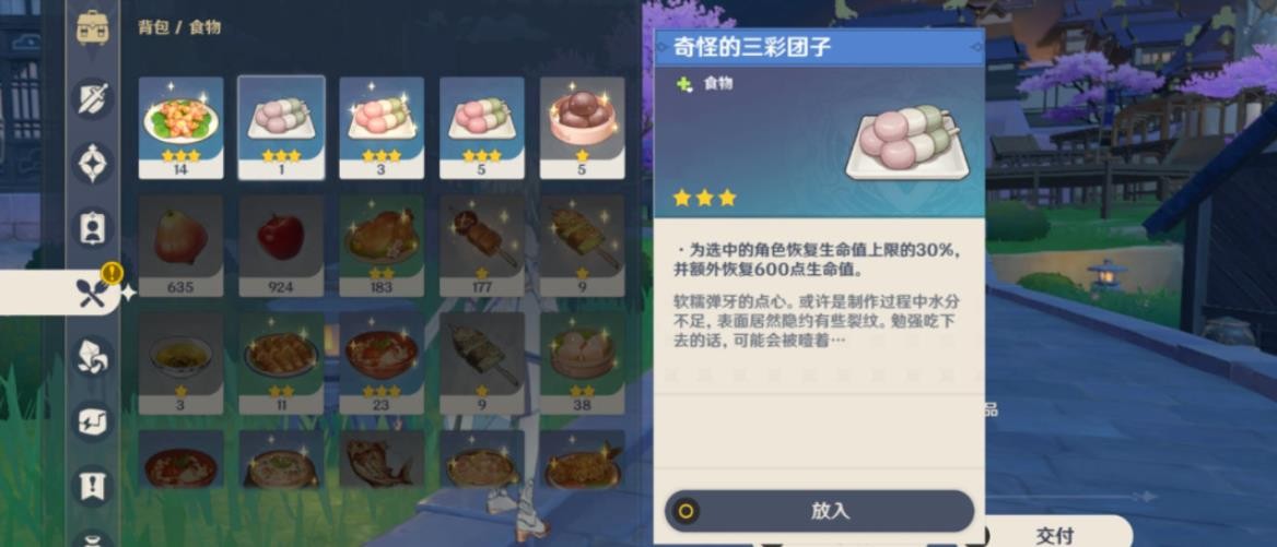 尽量不要选三彩团子、稠汁蔬菜炖肉、蒙德烤鱼这三个选项(因为npc要璃月菜)。重点是要给npc失败的菜品:「奇怪的...」什么菜,例如,「奇怪的三彩团子」。
