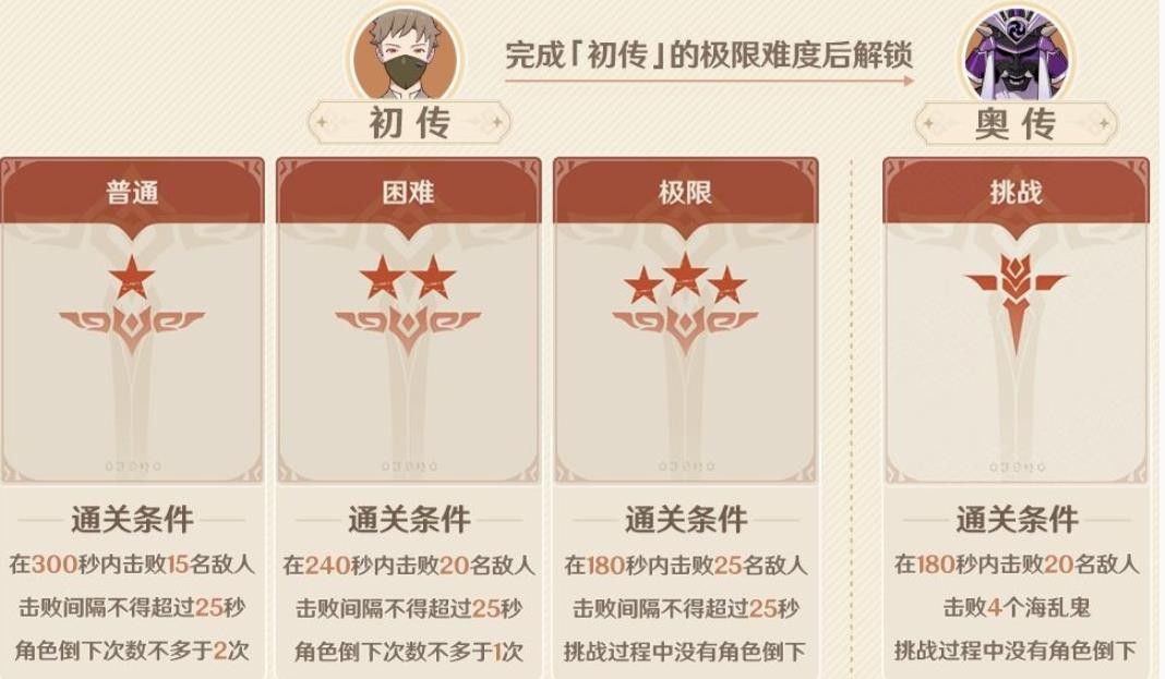 玩家需要达成幻影心流「初传」模式的「极限」难度挑战后,才可以解锁「奥传」模式的挑战。