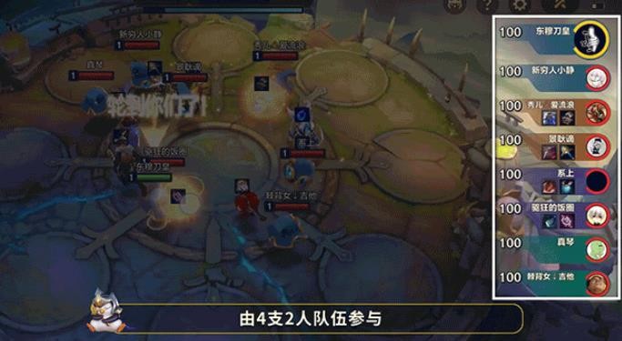 双人玩法是一个团队竞技的玩法,满足大家和朋友组队的需求。在双人玩法中,由4支2人队伍参与,共计8名玩家进行游戏,这个玩法的大部分规则沿用经典玩法,同时有一些专门针对这个玩法的创新设计。
